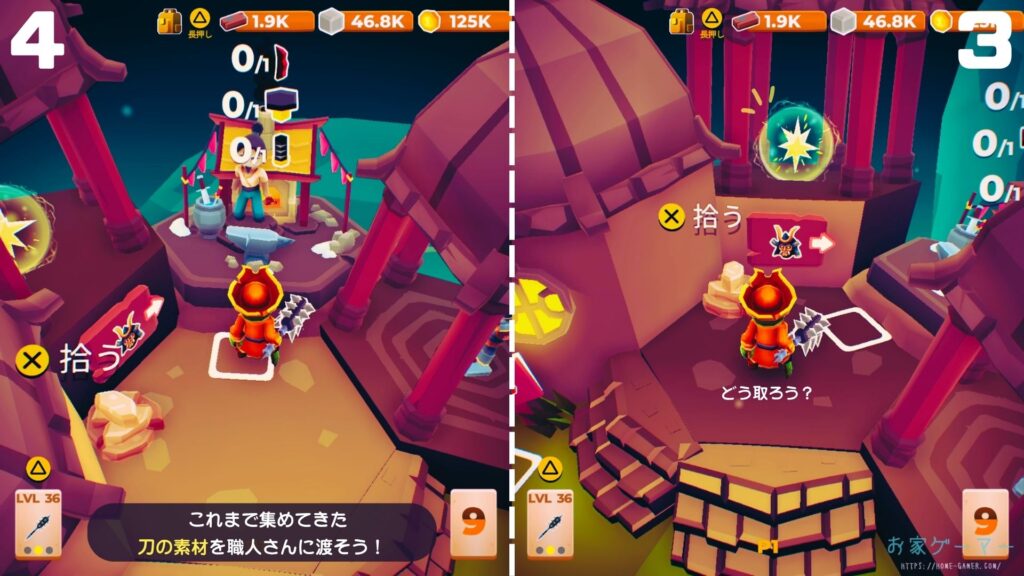 4. 刀鍛冶に【刀の刃】【刀の鍔 (つば)】【刀の柄】を渡す
