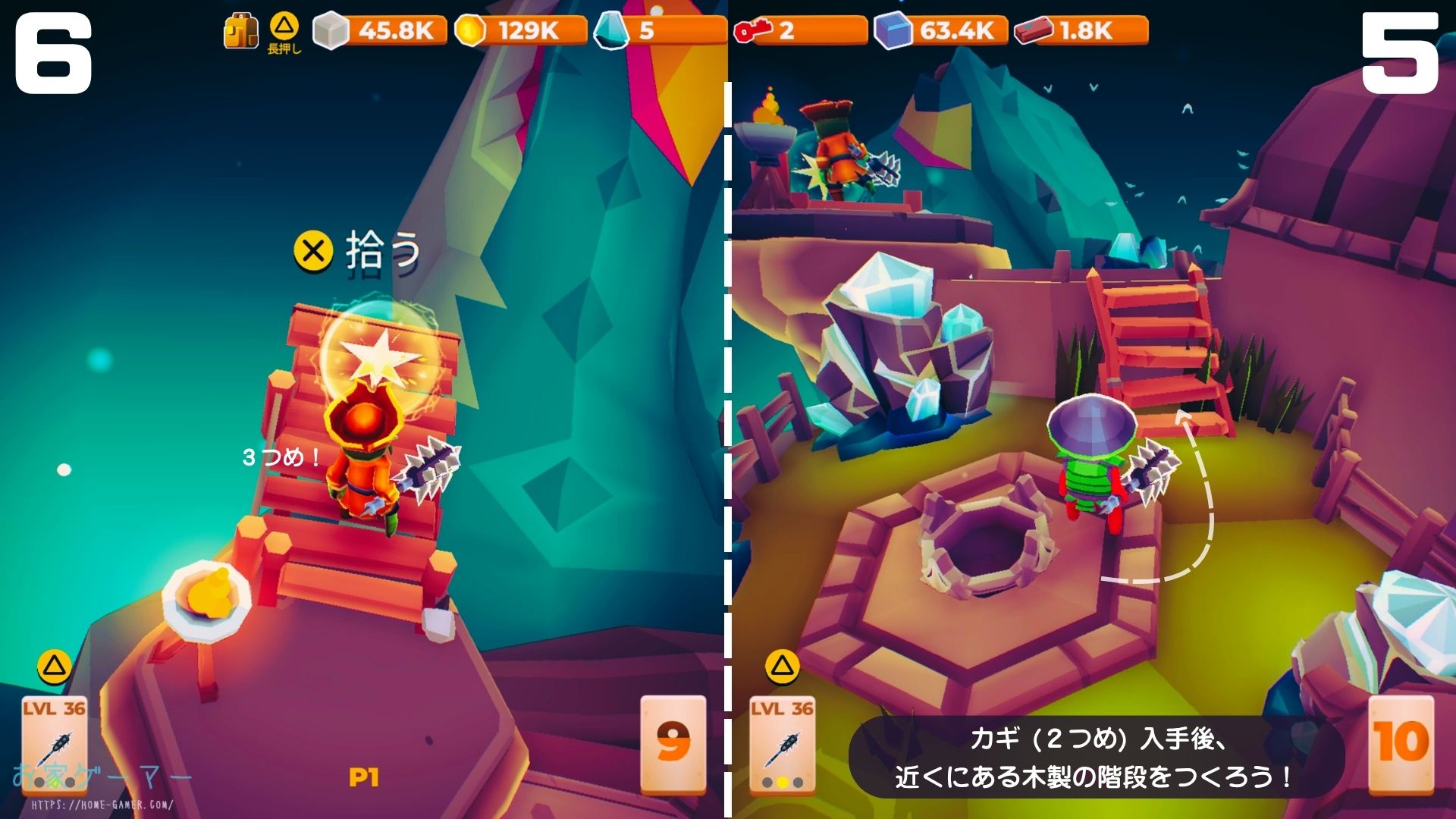 1.「カギ (赤):1つめ」入手後、そばにある 階段をつくる
