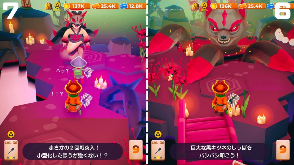 6. 巨大な黒キツネのしっぽを バシバシ叩こう!