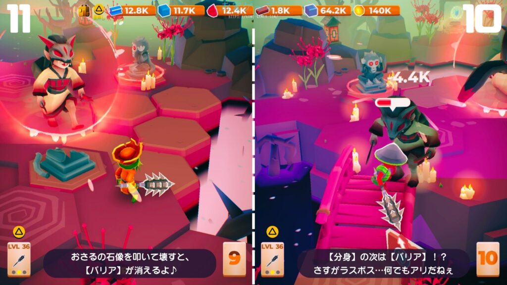 10. バリアを使い始めたら、おさるの石像 を壊そう