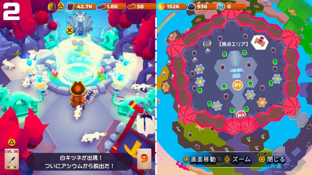 同時に たくさんの白キツネが【拠点エリア】に出現。