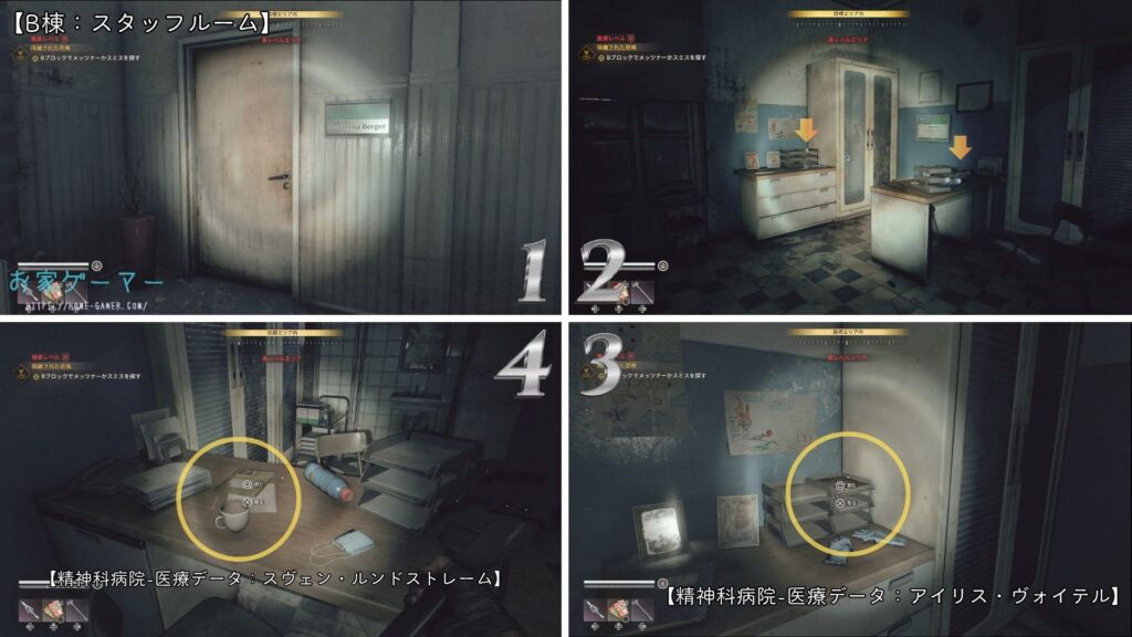 精神科病院1Fフロアの地図を入手後、にある書類棚をチェック。