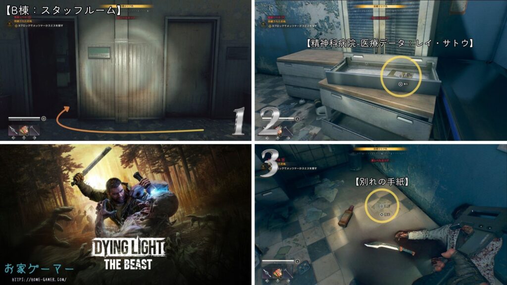 Dying Light The Beast,ダイイングライト ビースト,攻略,コレクタブル,収集アイテム,PS5,PS4,精神科病院の患者の記録,フィッシャー家の記録,ドクター・タル・クベロの音声,ピーター・パウラナーの日記,オリビアの記録