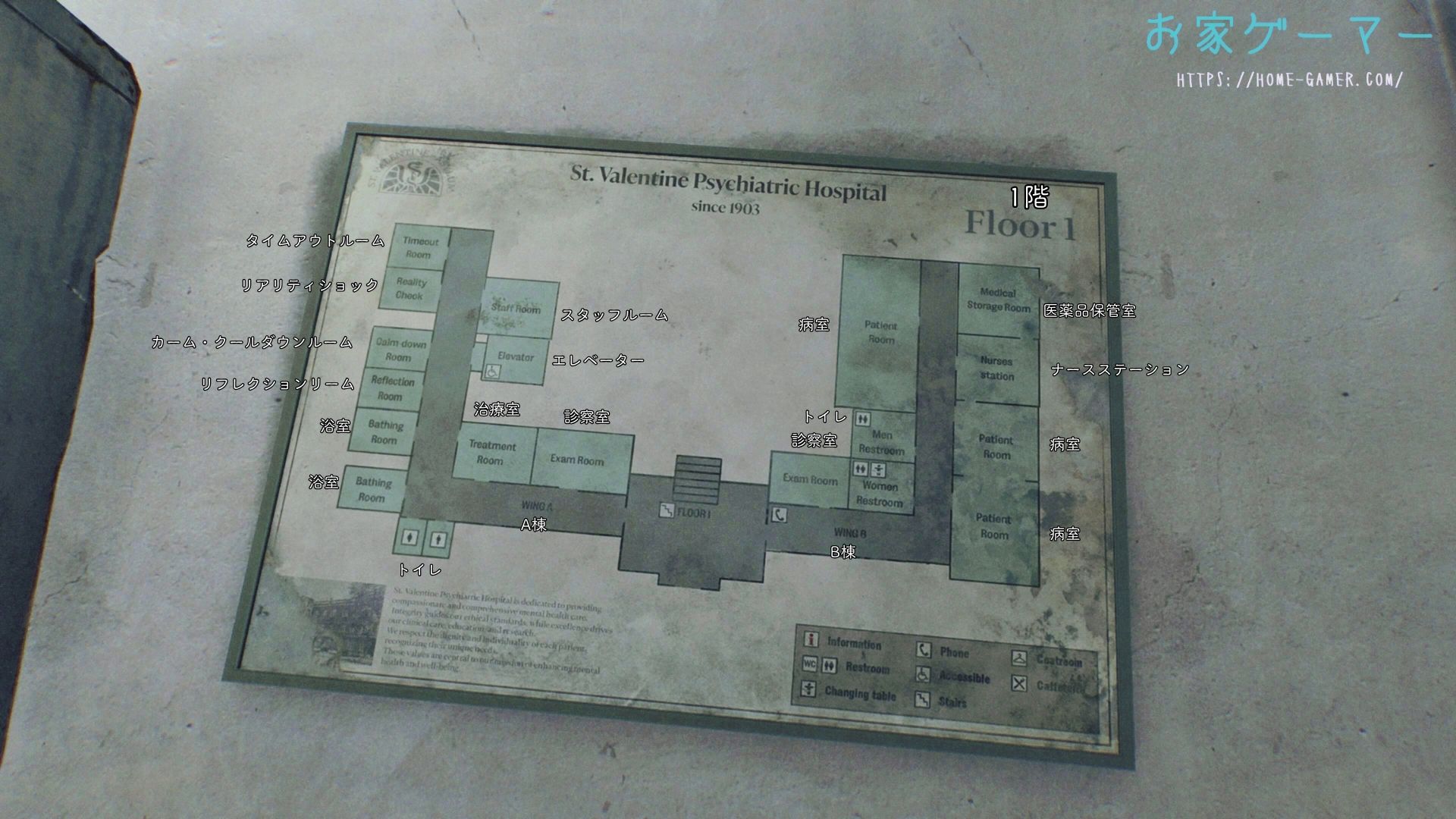 聖バレンタイン精神科病院は、地下1階・地上1階の2階建て。