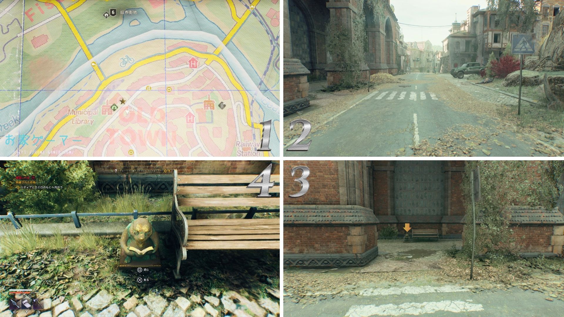 1.「旧市街地:図書館 (安全区域)」へ向かう