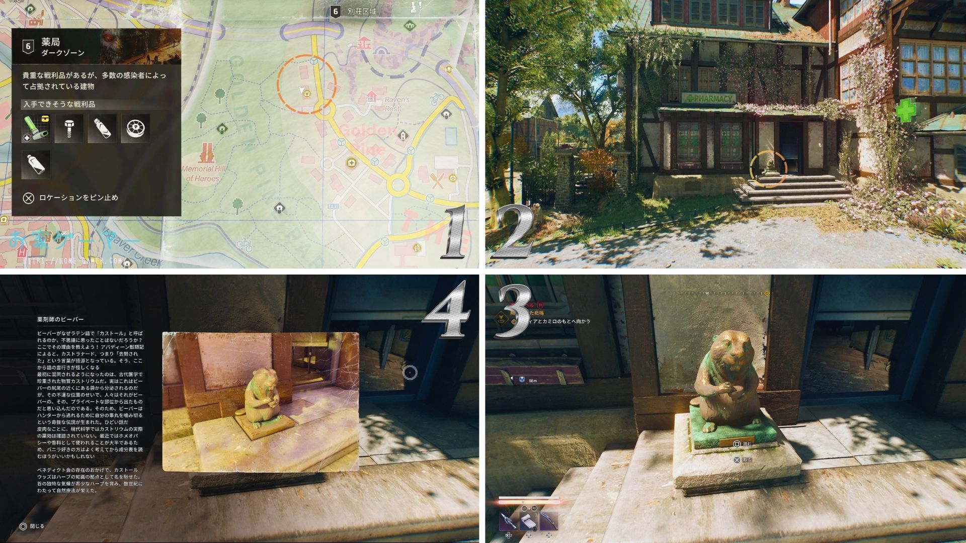 「Dying Light The Beast (ダイイングライトビースト)」攻略中に ちょこちょこ見つかるビーバー像。