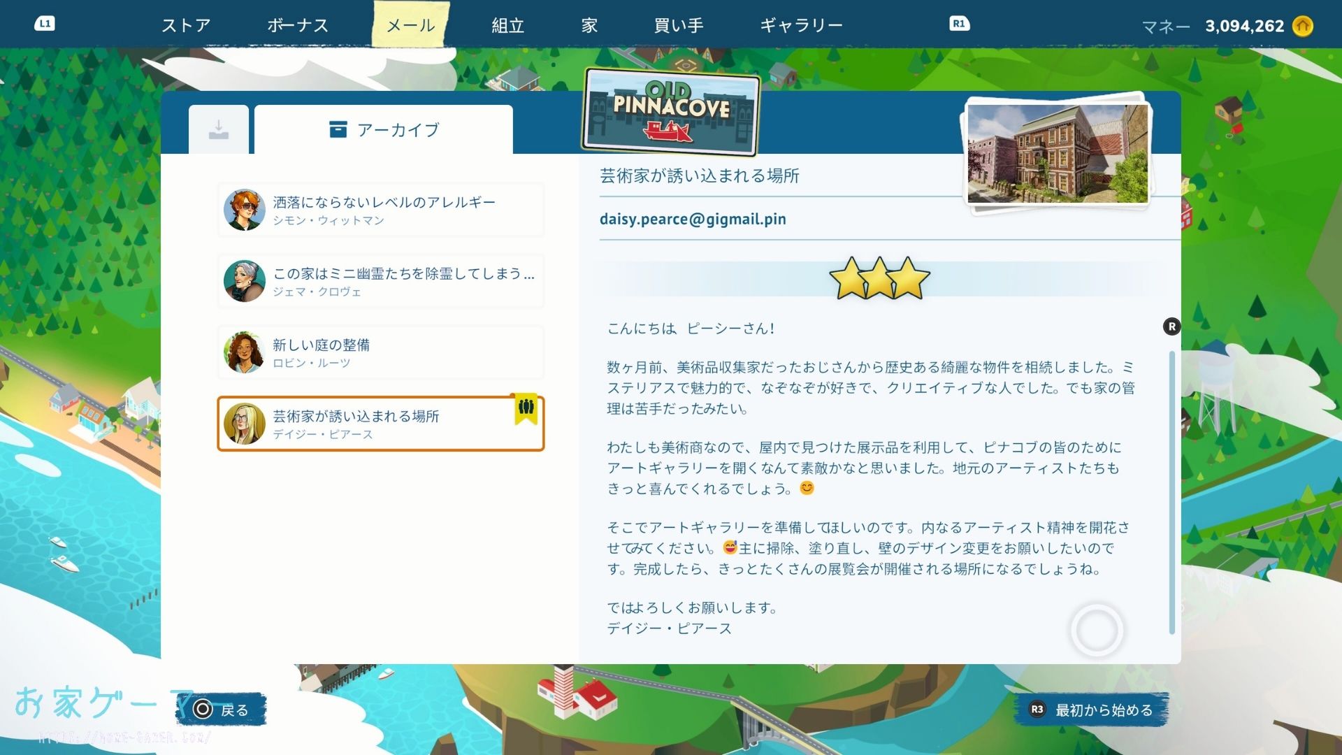 ハウスフリッパー2にて ピナコブ郊外・コーラルルート森・クレイフィッシュ海岸 それぞれに用意されているマルチ推奨ステージをクリアすると、ピナコブ旧市街地に マルチ推奨ステージ「芸術家が誘い込まれる場所」が出現。