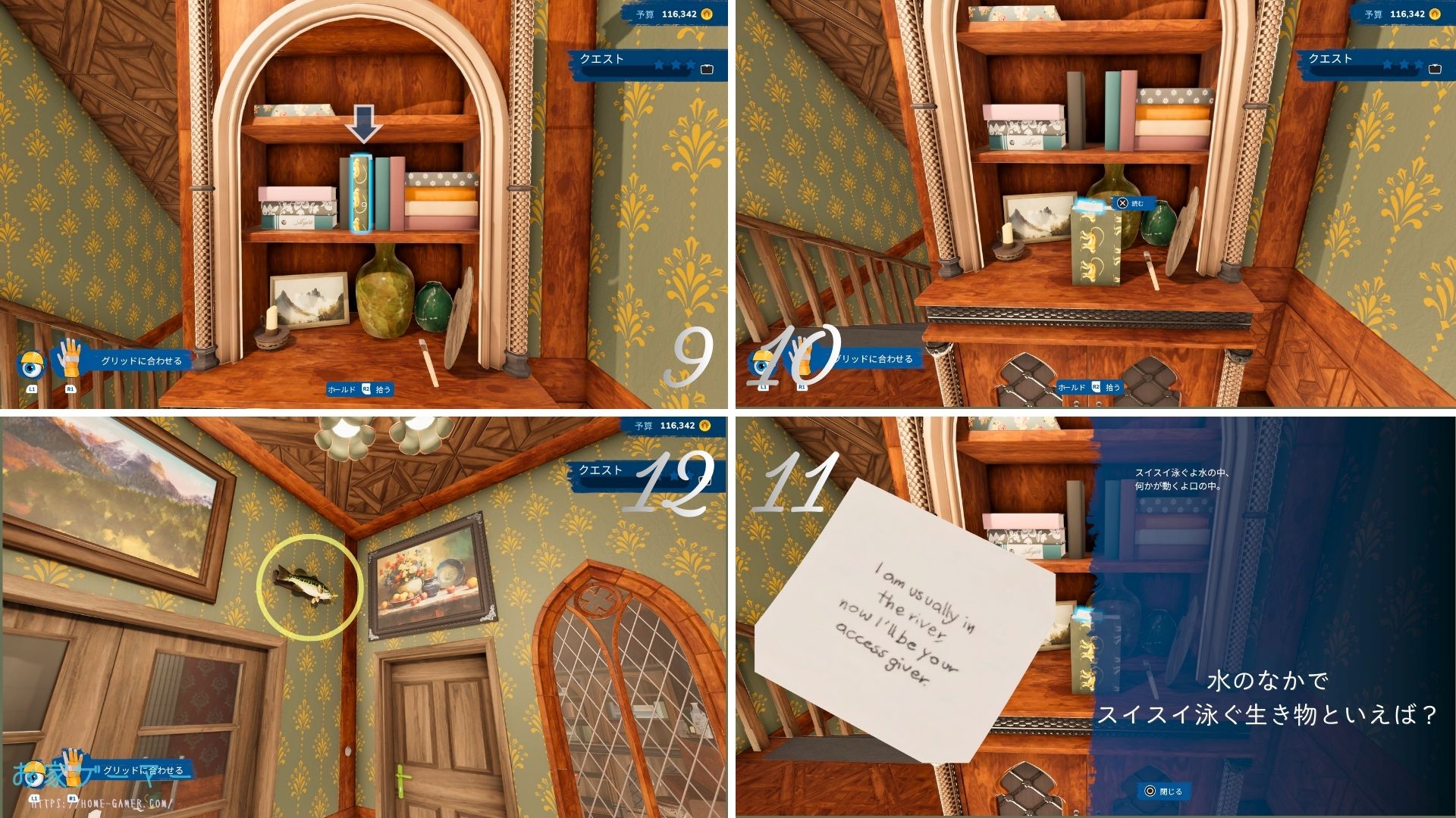 9. カーペットを動かす、付箋とオレンジのカギが見つかる