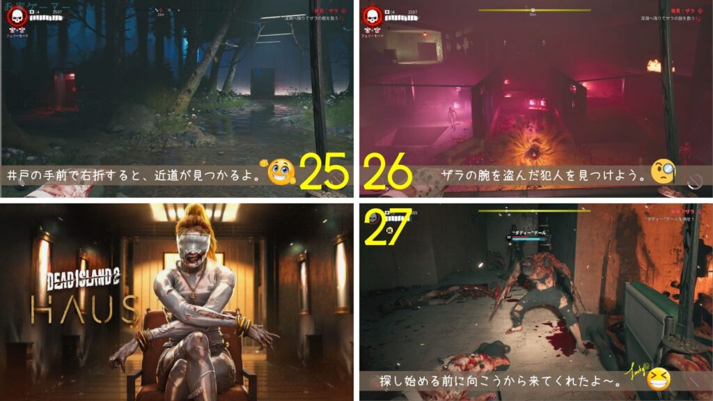 デッドアイランド2【DLC】HAUS (ハウス) のメインクエストに 声だけ出演している “ ホープ ” のお母さん・ザラを探すミッション。