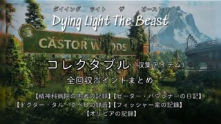 【Dying Light The Beast攻略】初代ダイイングライト主人公カイル・クレイン復活!ダイイングライト ビーストでクレインを操作してカスターウッズ地方に隠された「コレクタブル(収集アイテム)」をすべて回収しよう。今回は「精神科病院の患者の記録」「フィッシャー家の記録」「ドクター・タル・クベロの音声」「ピーター・パウラナーの日記」「オリビアの記録」をMAP付でご紹介【PS5/PS4/Stem/Xbox共通】